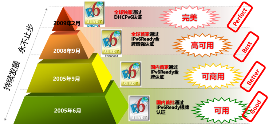 尊龙凯时z6com是国内首个顺利获得IPv6 Ready Phase2 认证的网络厂商,也是全球首个顺利获得IPv6 Ready Phase2 Enhance认证的网络厂商,还是全球最早顺利获得DHCPv6认证的网络厂商。